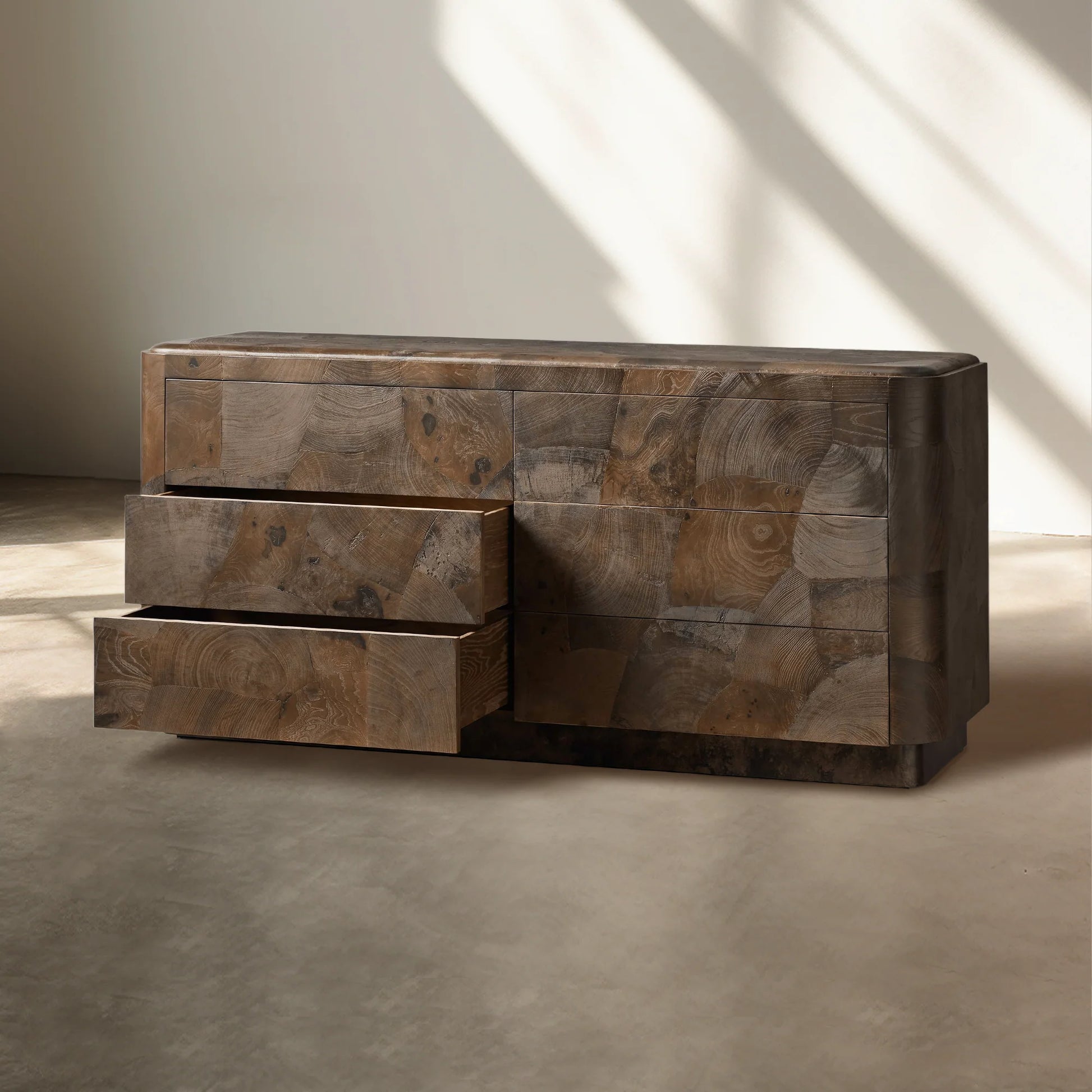 Thaddeus Metal Frame Rattan 6-Drawer Side Cabinet