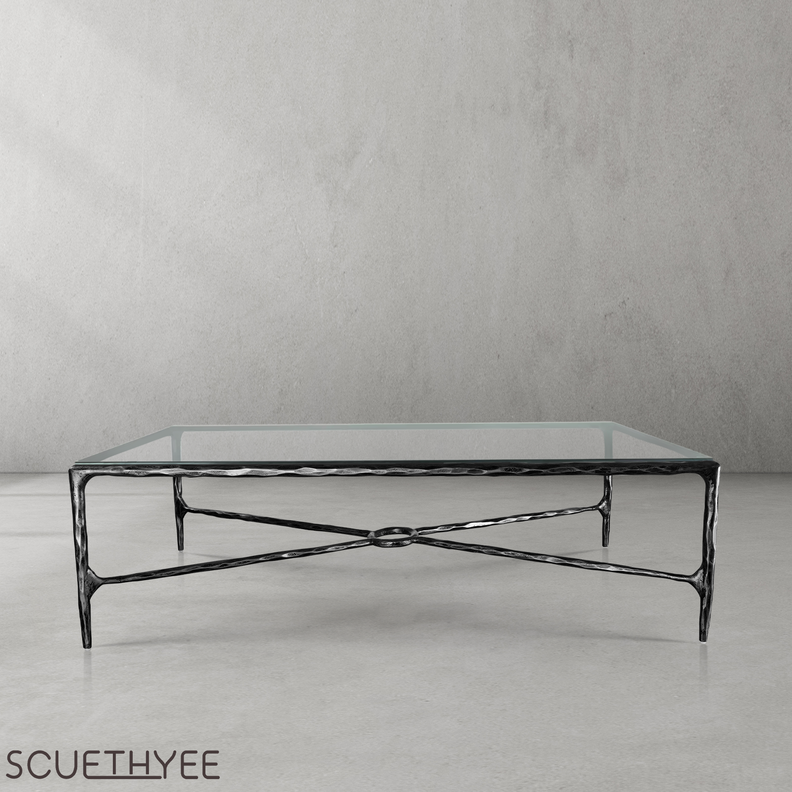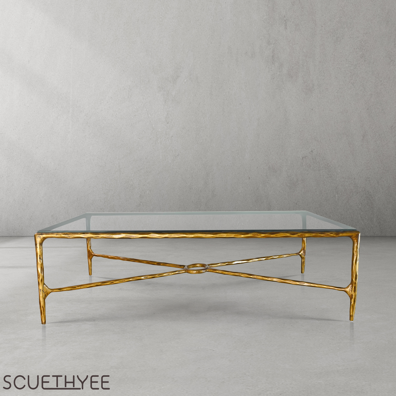 Thaddeus Vintage Cowhide Rattan Coffee Table