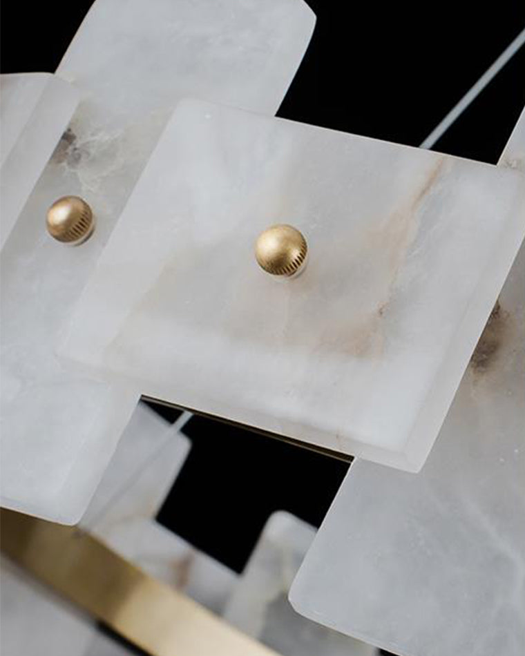 Elevate your space with the exquisite Alabaster Tiered Chandelier. Crafted from luxurious alabaster and finished in elegant gold, this chandelier adds a touch of sophistication to any dining room, living room, or bedroom. Enhance your home's ambiance and impress guests with this stunning piece.
